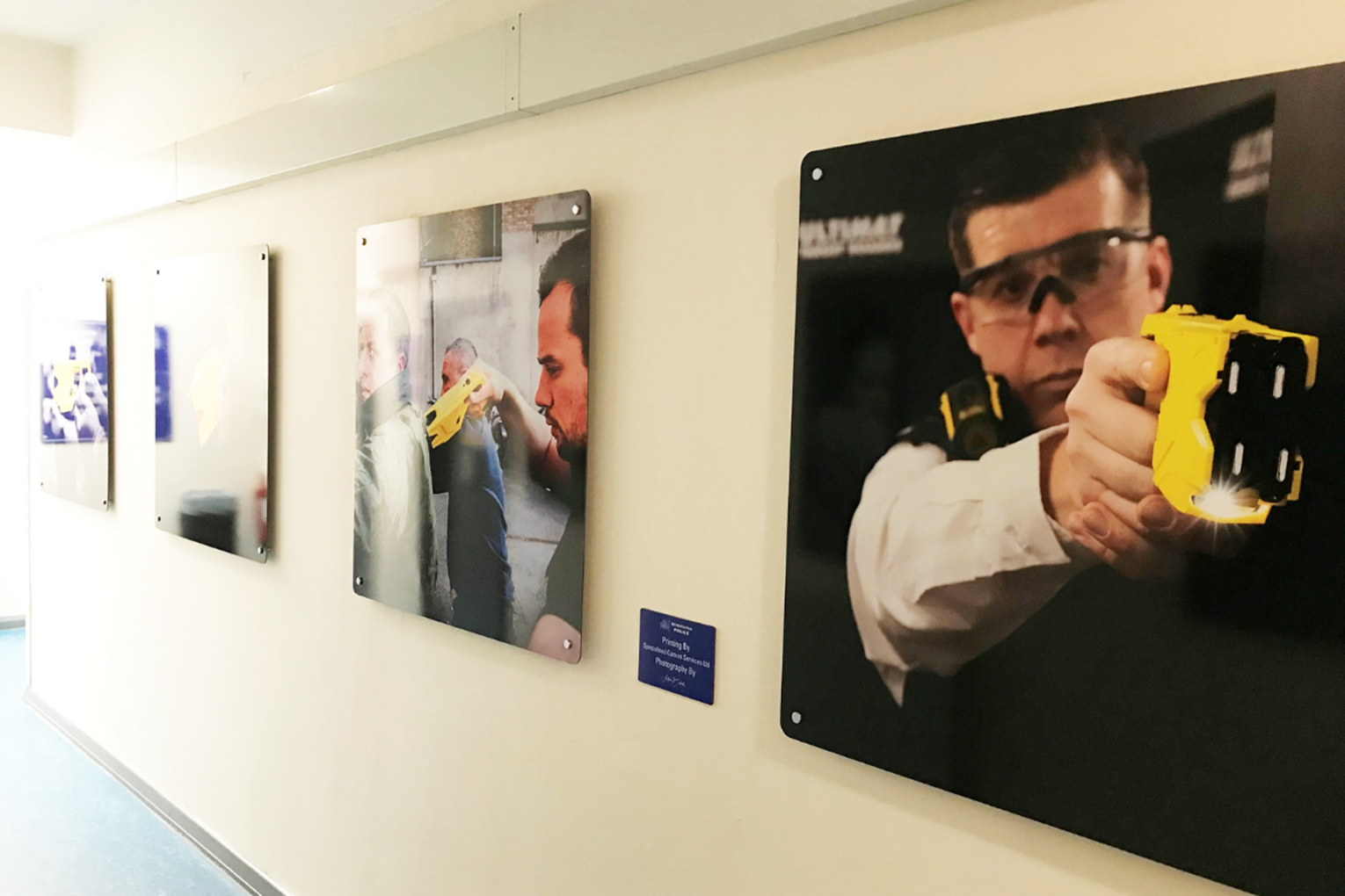 It was agreed by the Met Police that our experienced team would produce and install a range of rigid displays made from ACM featuring high-quality images of taser training. These stunning images reflect the serious nature of the health and safety training carried out whilst highlighting the level of professionalism and wide scope of police activity that happens at the training centre.