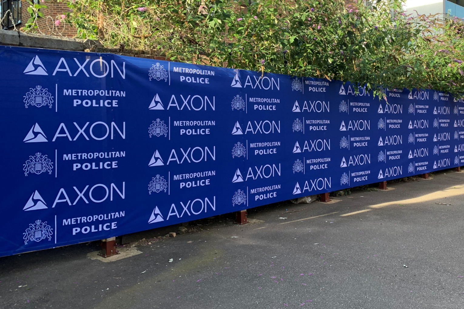 The client also agreed on branded fence hoarding made from eco-mesh. This alternative to PVC mesh is adorned with the Met Police logo and corporate imaging which creates an impactful impression at multiple locations around the site. This suggestion from Flagmaker’s technical sales team provided a product that is suitable for outdoor use and adverse weather conditions and is also environmentally friendly.
