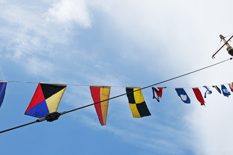 In 1818 the flag was changed again to feature a white and red horizontal bicolour with coat of arms in the centre and a blue square with white five-pointed cross in the left hand corner. The coat of arms was removed in 1934 and is still flown today. The flag can be displayed either horizontally or vertically.