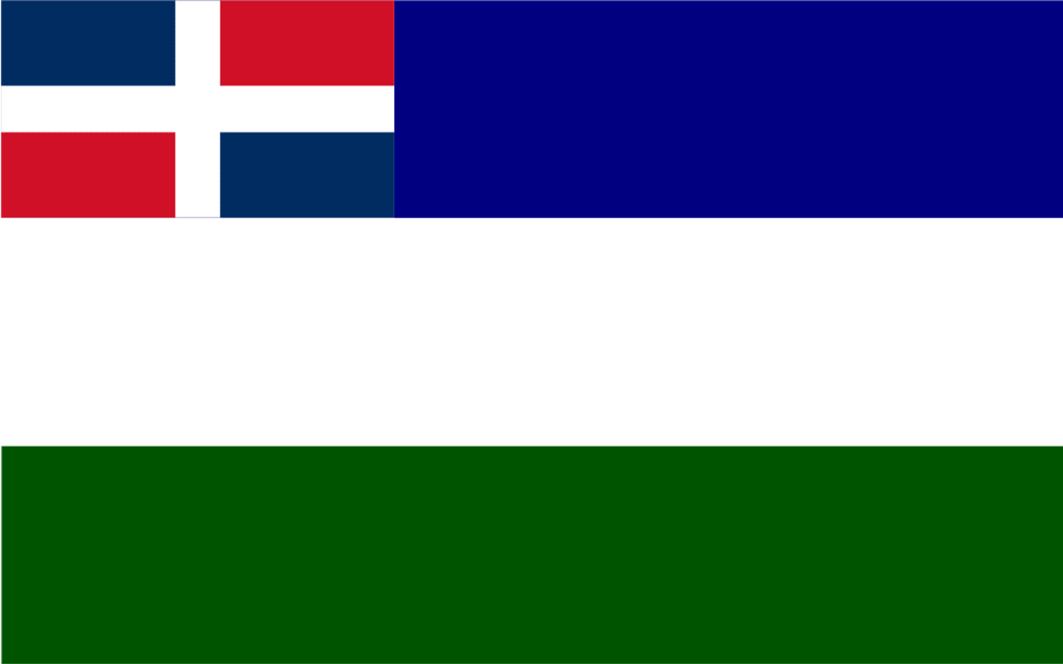 The Dependencies flag of the Dominican Republic was adopted in 1953. It represents the Territorial Islands of Saona, Beata and Catalina and features a blue-white-blue horizontal flag with the national flag in the top left corner.