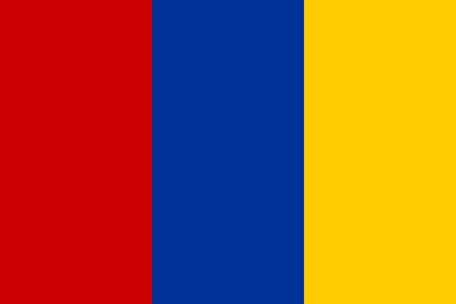 Panama Joined Ecuador and Neuva Granda to become Gran Colombia in 1821. The flag adopted was a yellow-blue-red horizontal tricolour with coat of arms in the centre. A year later the coat of arms was changed and the blue band was lightened.