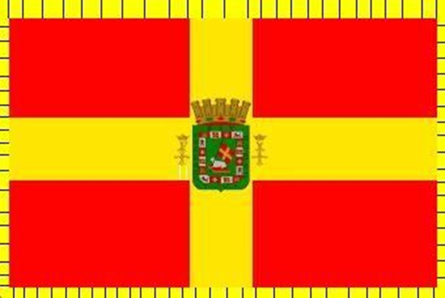 A new colonial flag was also adopted at this time. The flag features a yellow-bordered red field with yellow cross. At the centre was a new coat of arms that featured a crowned green shield with a lamb holding the new flag surrounded by various Spanish symbols. At either side of the shield are crowned F and Y.