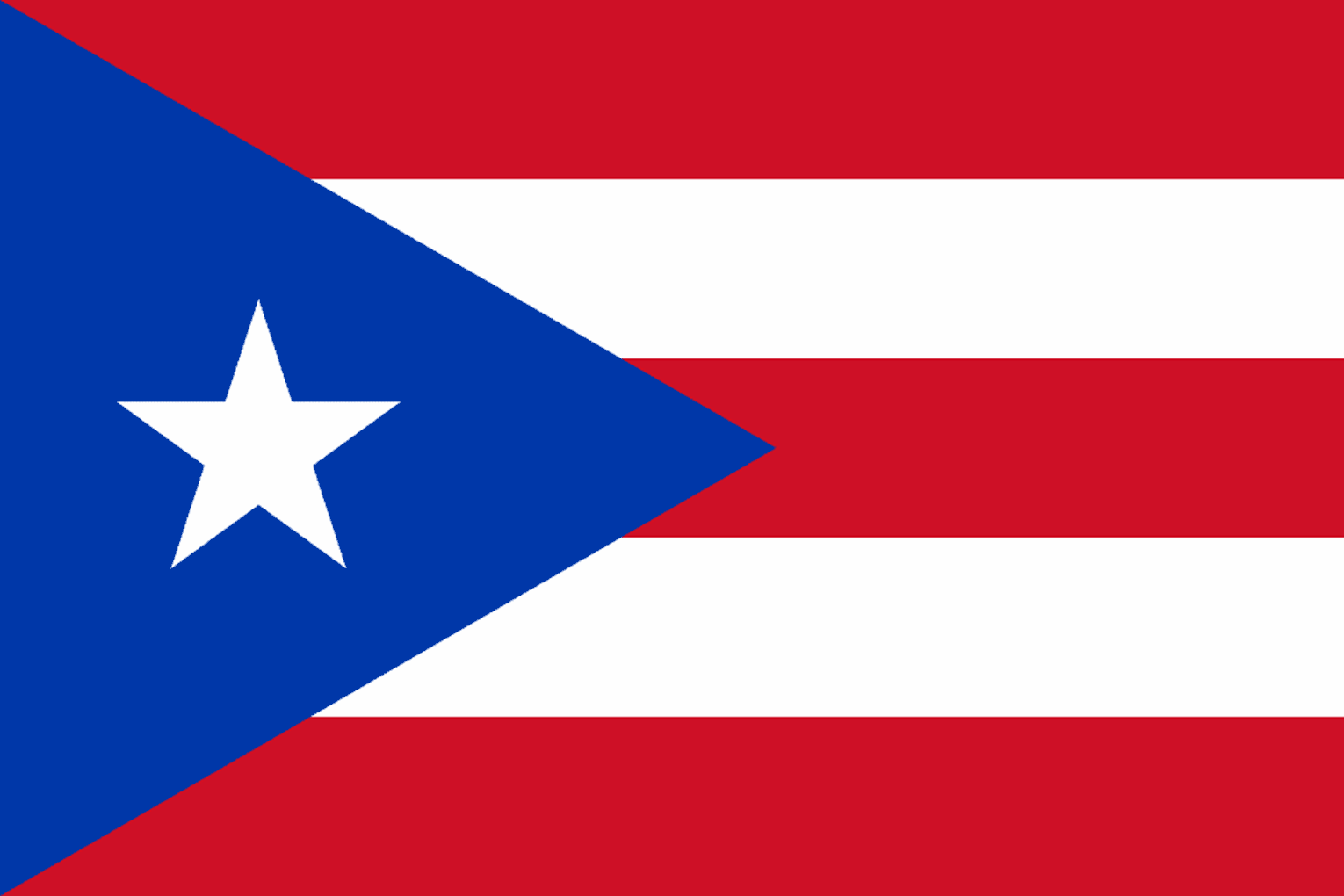 In 1952 Puerto Rico became a commonwealth. The flag designed in 1895 was adopted with a darker blue triangle. The three red stripes represent the blood nourishing the government, the white stripes represent liberty, the dark blue triangle is the government and the white star is the commonwealth of Puerto Rico. In 1995 the triangle colour was changed again to sky blue.