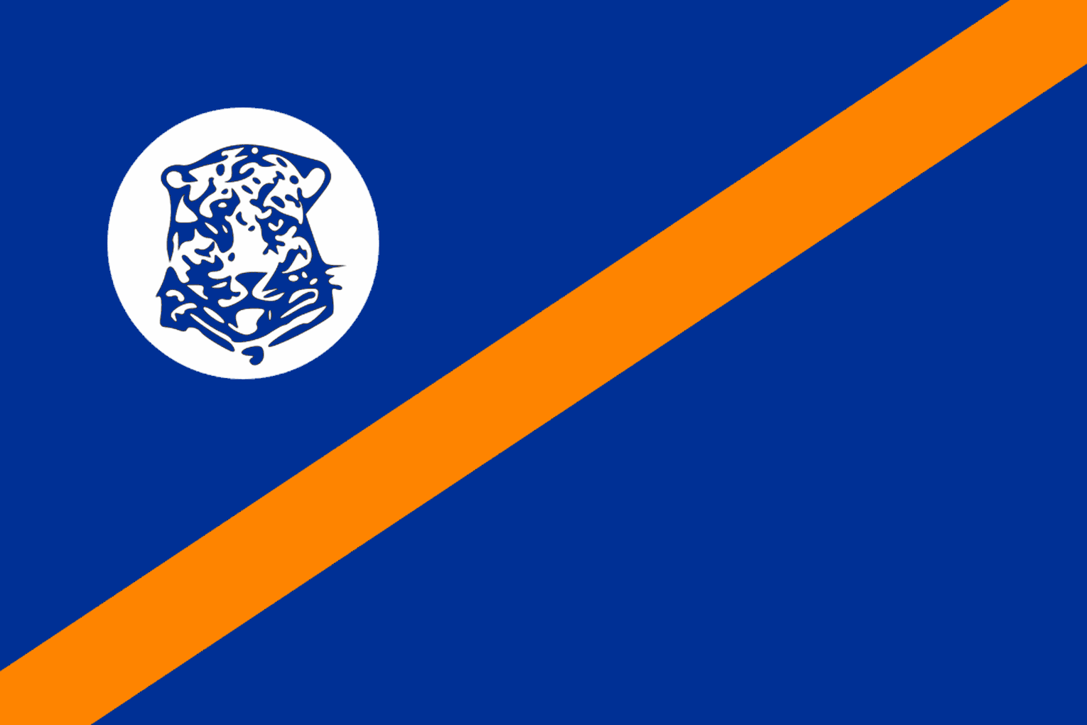 In 1973 the North Western part of South Africa was the Republic of Bophurhatswana. The flag featured a plain blue field with an orange diagonal stripe and a white circle with a leopard’s head in the top left corner. In the same year Ciskei adopted a plain sky blue field with white diagonal strip and local bird in the centre.