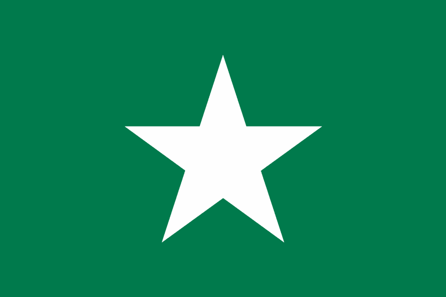In 1882 flag of the state of Goshen was adopted and features a black-white-red horizontal tricolour with vertical green stripe. A plain green field with white five-pointed star was adopted as the flag of Stellaland. Both of these flags were short-lived as they soon became under British rule.