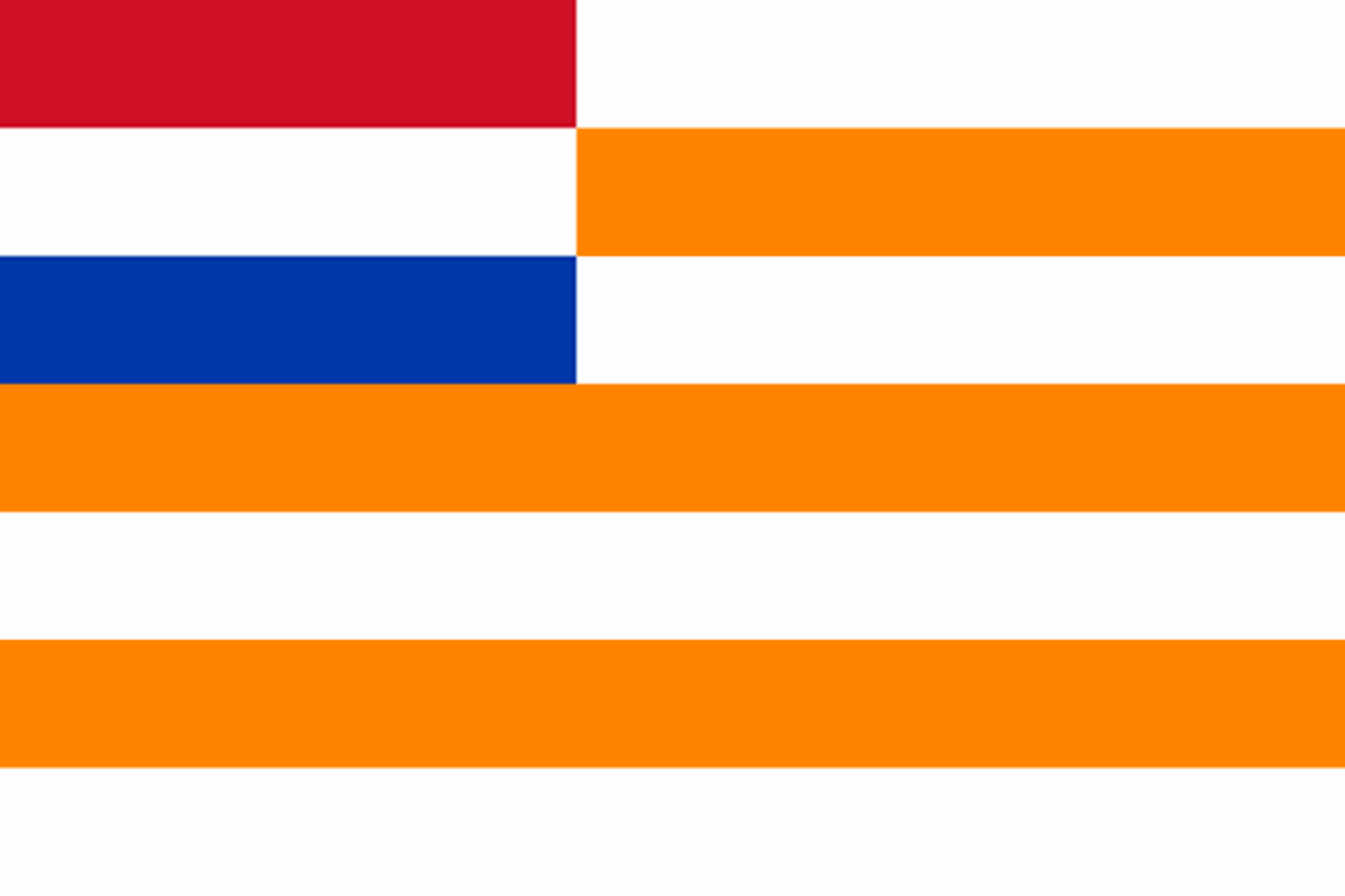 In 1954 the Independent Boer Orange Free State flag featuring 4 white stripes, 3 orange stripes and a rectangle made up of a red-white-blue horizontal tricolour in the top right. In 1876 British ruled over the area known as the Cape Colony and the flag flown was the traditional British Blue Ensign.