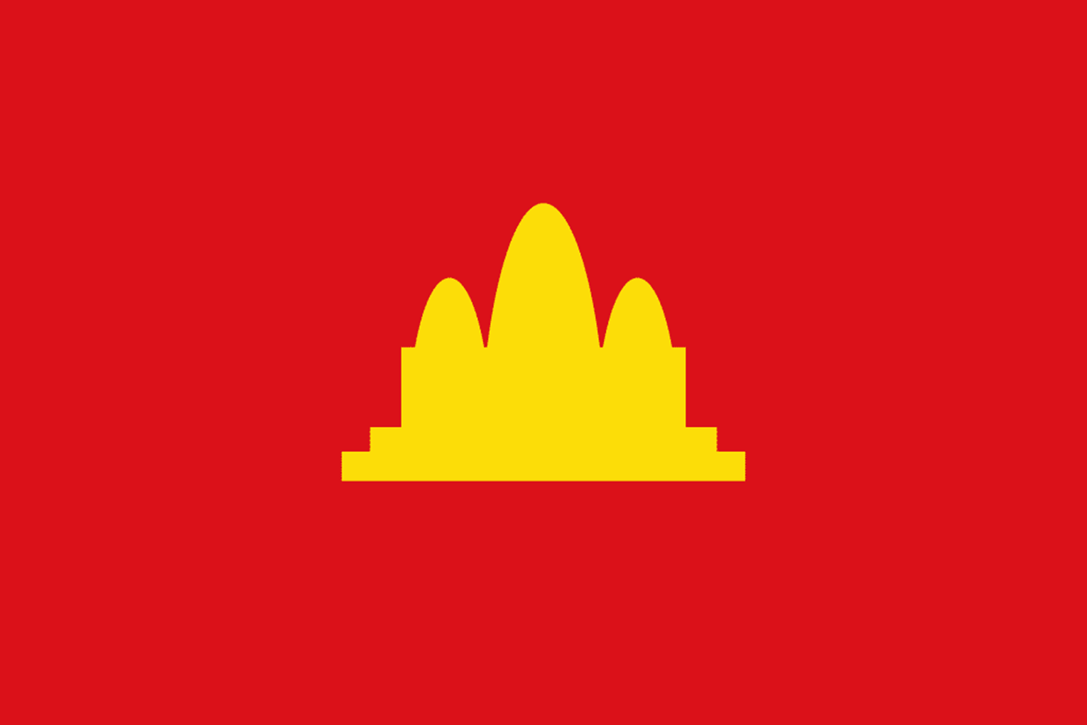 The Khmer Rouge established control of Khmer Republic in 1975 renaming the country Democratic Kampuchea. A plain red flag with yellow three-towered monument similar to the Angkor Wat was adopted as the national flag.