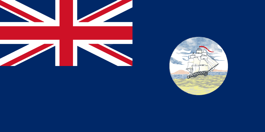 In 1875 Guyana became a British colony. The flag flown was a blue British ensign with Union Flag in the top left hand corner and a disk depicting a galley on the ocean on the centre right side.