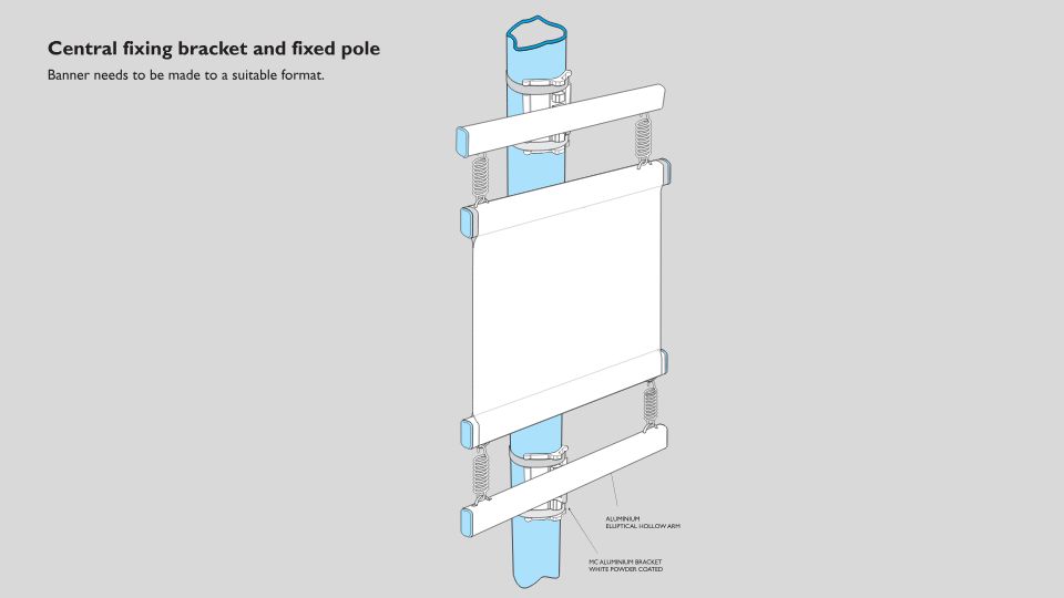 Banner system to suit banners up to 1000mm in length, mounted in central location on the pole. Includes two brackets which mount to a pole and can be altered. S…