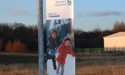 The heavy duty post mount systems provides a great solution for advertising at height by fitting artwork to lampposts . The system is made of strong steel brackets and heavy-gauge aluminium and can fit banners between 500mm wide and 1000mm wide.