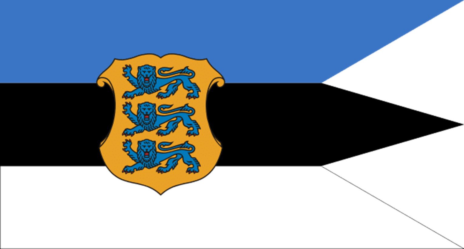 The ensign of the Estonian navy was adopted in 1991 and is similar to the state flag, but it has a swallowtail, and carries the state’s coat of arms with the shield of the state arms offset towards hoist