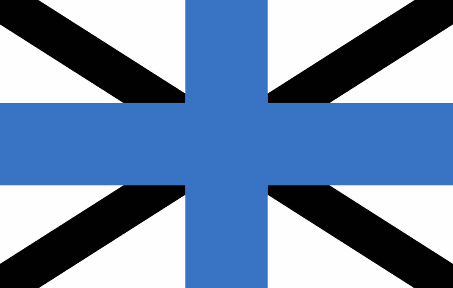 The Estonian naval jack is strikingly similar to the British Union flag. It is 7:11 white flag with a black saltire and over it a blue cross.