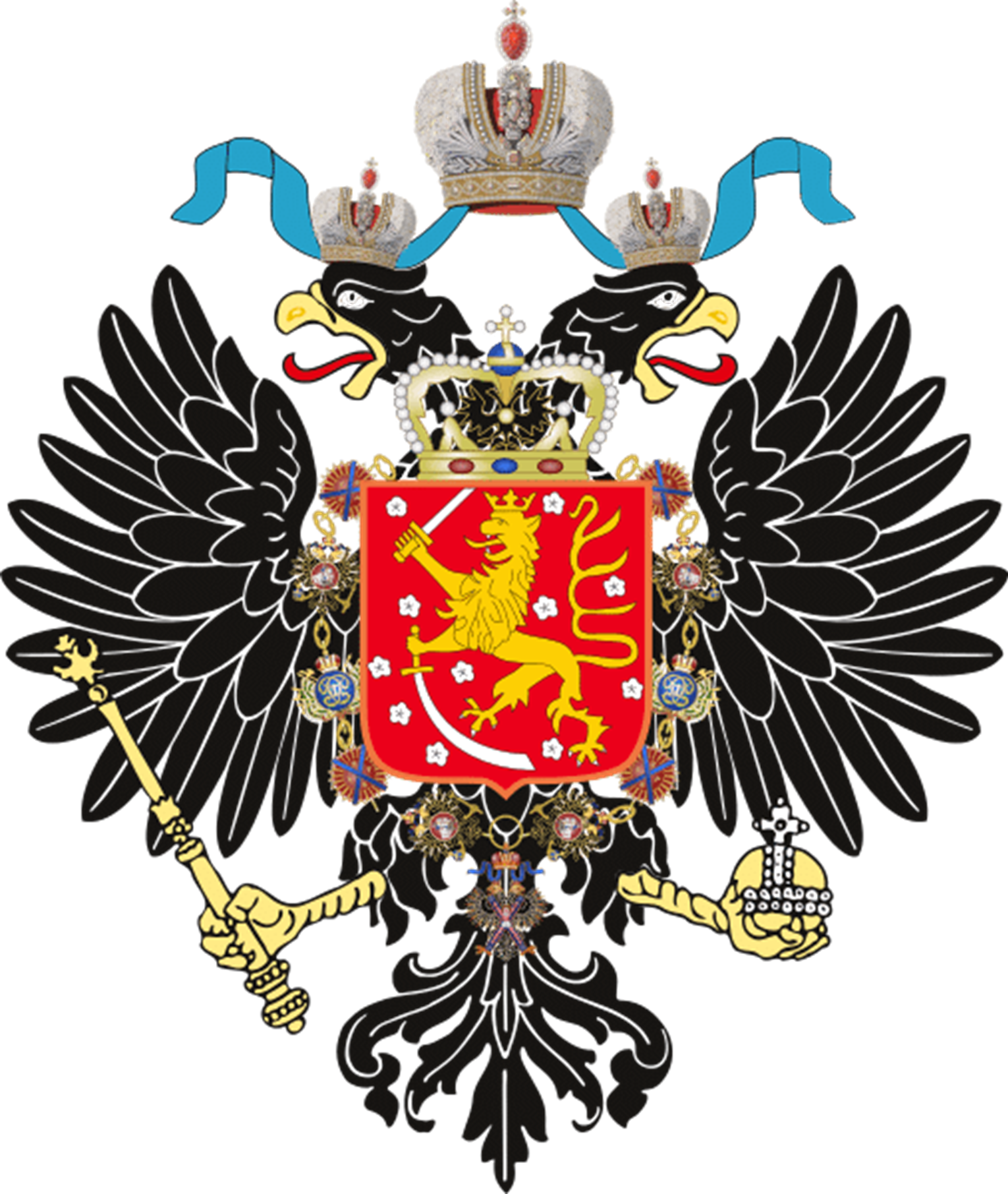The Grand Duchy of Finland under Russian rule possessed a certain degree of autonomy, and its coat of arms was displayed as a device on Russian flags within Finnish borders. In the midst of an encroaching policy of Russification, the Finnish people used the original, untampered coat of arms as a symbol of independence. Notice that in the original Finnish arms, a curved sabre is trampled underfoot, whereas in the Russian-based arms, the sabre is held instead.