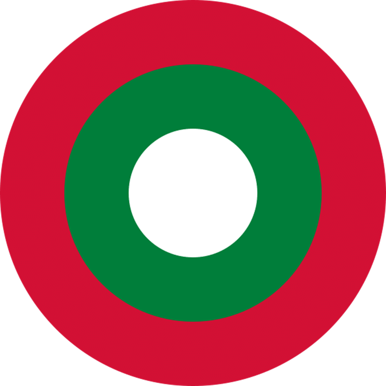 The Roundel of the Maldives Air Force features a red, a green and a white disc representing the colours of the national flag. The roundel is often found on the side of the air force planes.