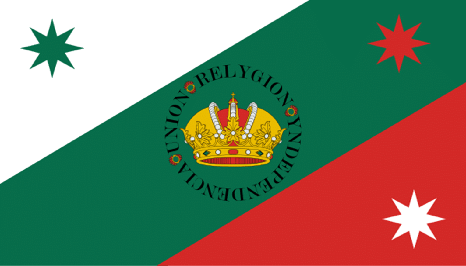 When military commander Augustín de Iturbide defected to the rebellion the Army of the Three Guarantees was assembled and a new diagonal tricolour flag bearing three stars was created.
