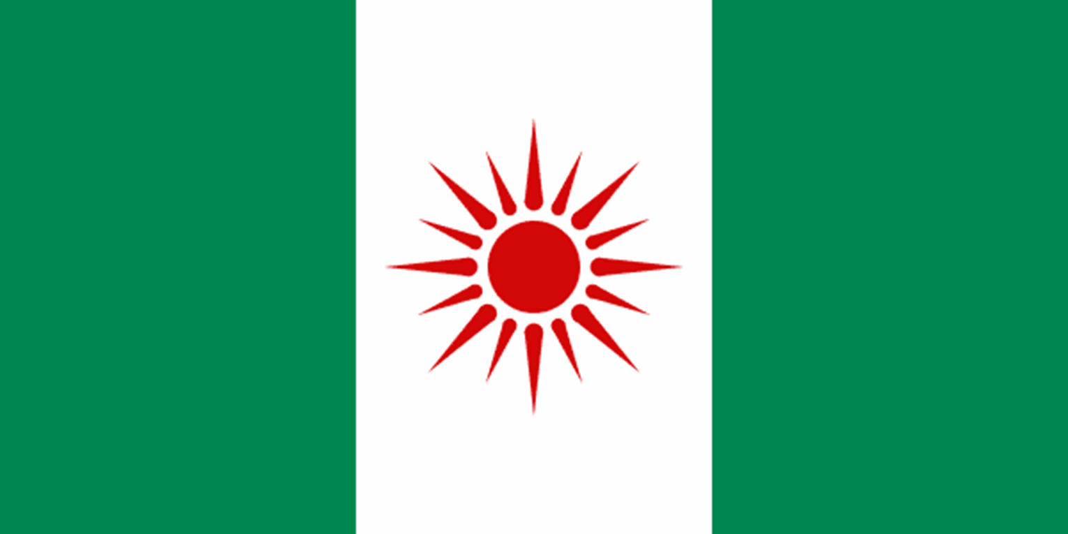In 1887 the Royal Niger Company adopted a White British Ensign with a red-bordered white circle with “ARS JUS PAX” in a black Y as their flag, the company was the group that gained control over the territories of Nigeria.