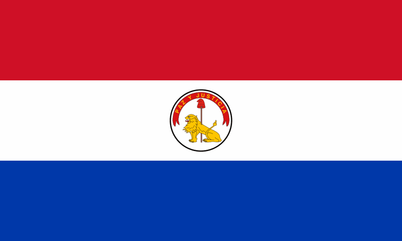 The reverse of the national flag featured the red-white-blue horizontal tricolour with the seal of the supreme court of Paraguay. This seal featured a lion with a staff and liberty cap.
