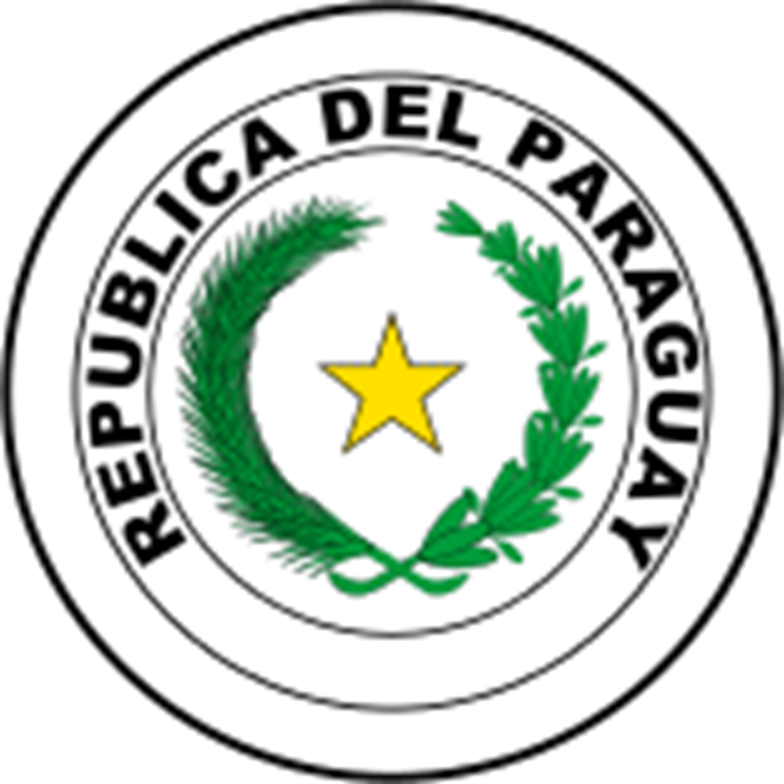The front of the Coat of Arms of Paraguay has been roughly the same since 1820. It features a white circle with a golden five-pointed star surrounded an olive and palm branch and the words “REPUBLICA DEL PARAGUAY” above.