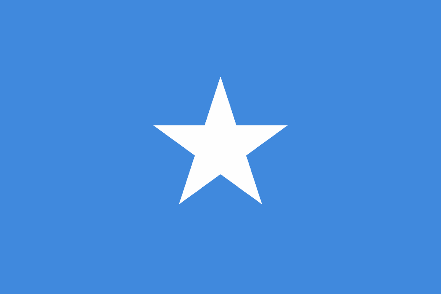 After World War Two ended Italian East Africa became United Nations Trust Territory and the modern day light blue field with a white five-pointed star at the centre was adopted for this interim period. When the country finally became independent in 1960 the flag remained the same.
