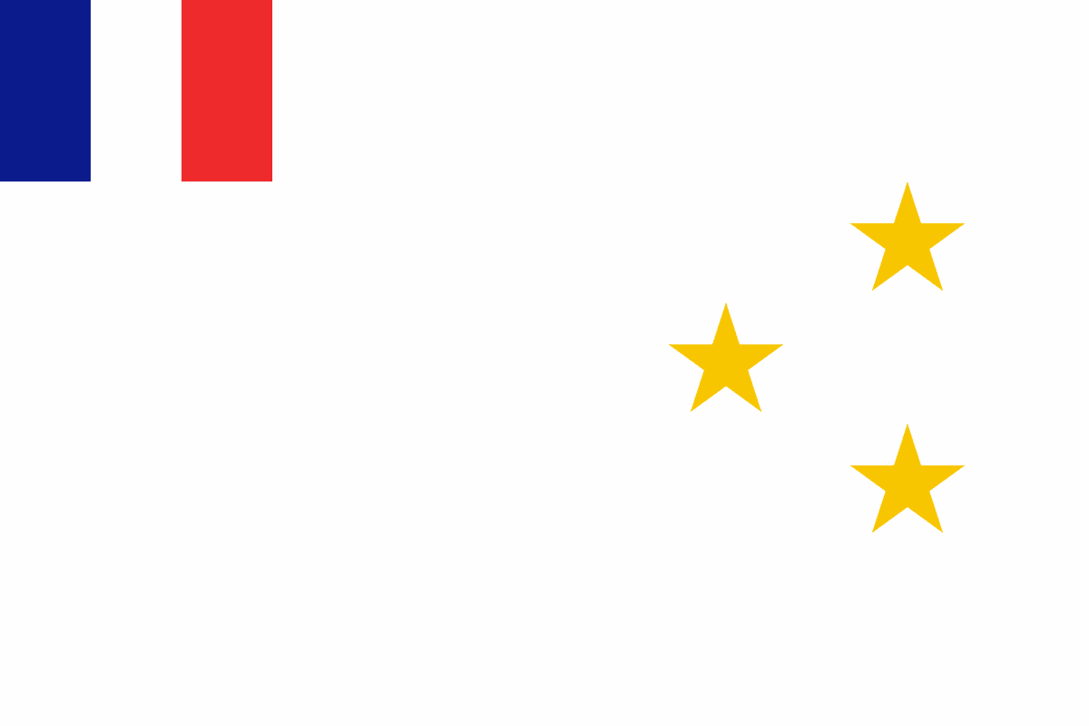 The State of Aleppo featured a plain white field with the French Tricolour top left and three yellow five-pointed stars in a triangle centre right.