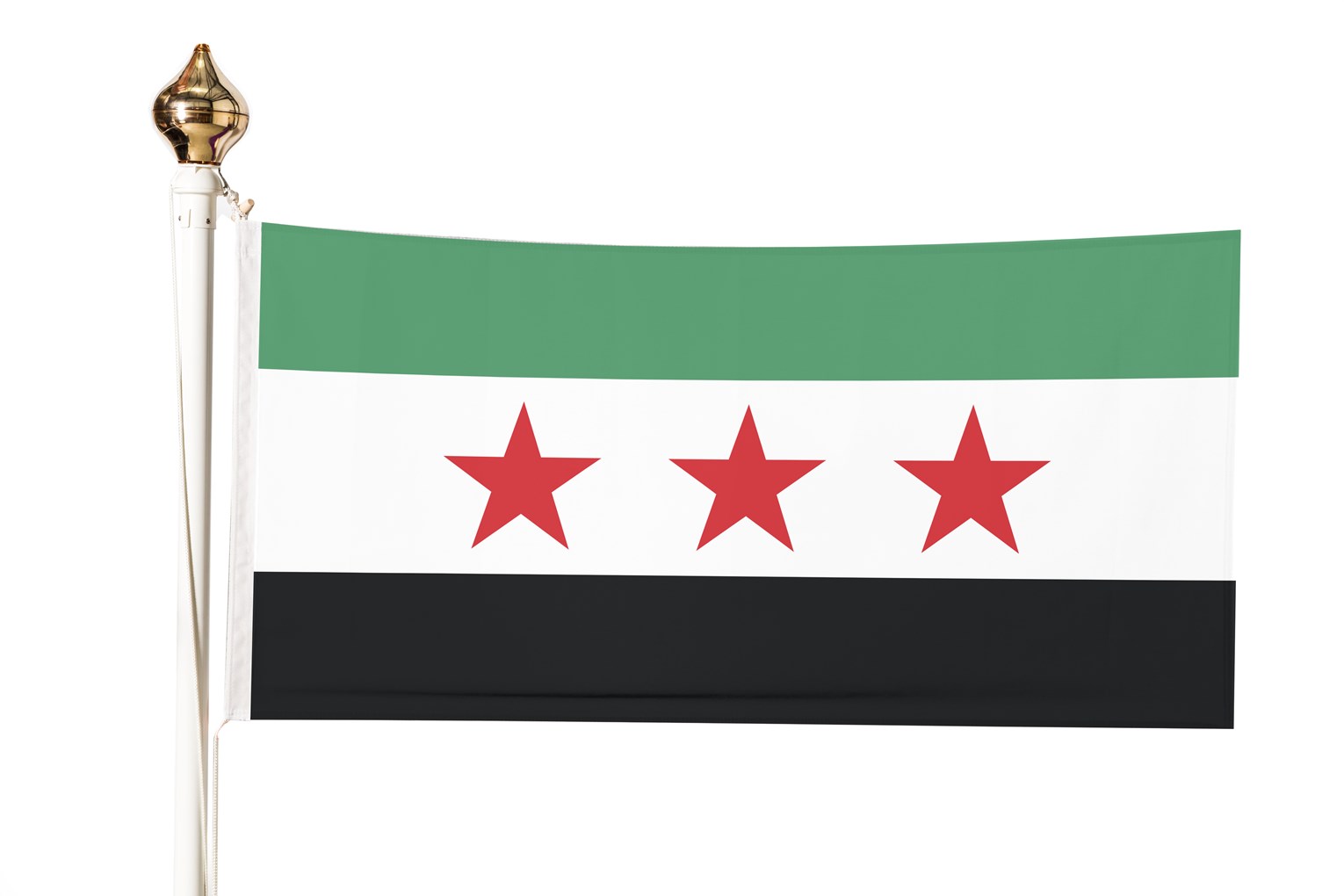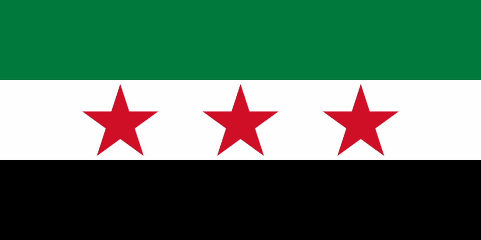The opposition of the ongoing Syrian civil war fly the green-white-black horizontal tricolour with three red five-pointed stars of the Syrian republic of the 1930s.
