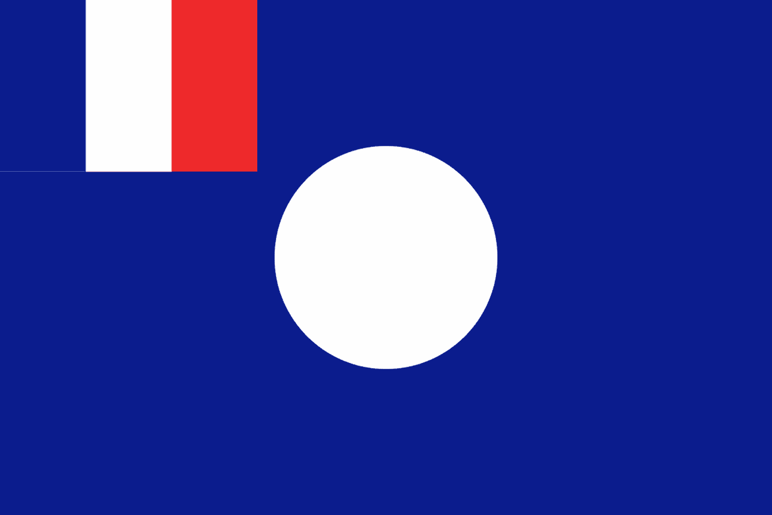 The Flag of the State of Damascus was dark blue field with the French Tricolour top left and a white disc in the centre.