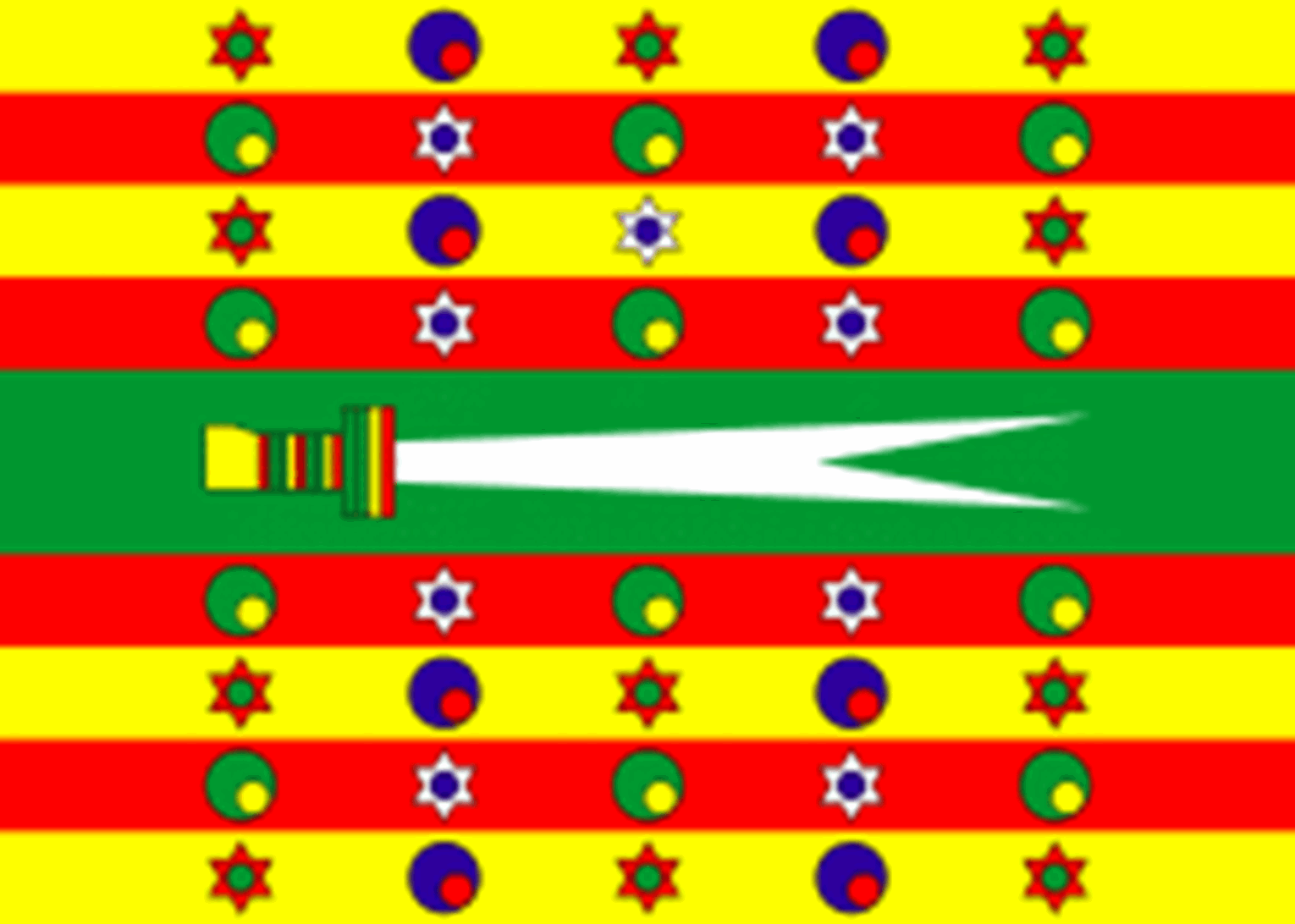 In 1705 the rulers of the area of the Bay of Tunis had their own flag, which featured multiple horizontal yellow-red-green stripes with snake-tonged sword at the centre.