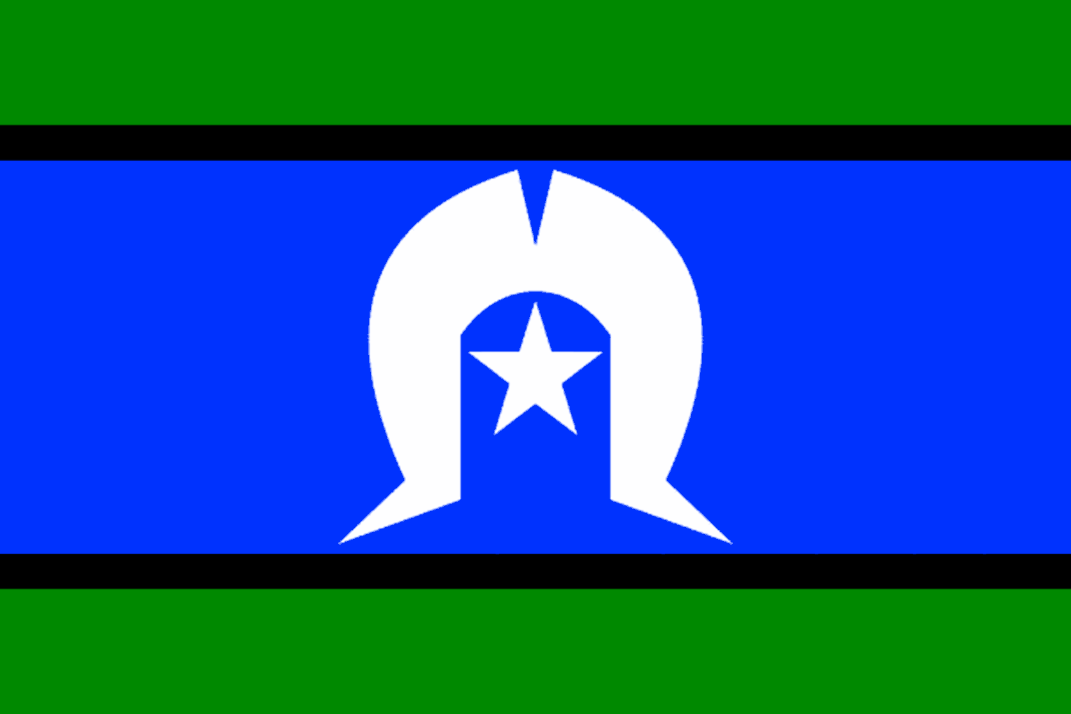 An official flag was designed in 1992 to represent the Torres Strait Islanders. The Torres Strait Islanders flag design has green-black-blue-black-green panels with a white dhari headdress in the centre with a five-pointed star in the centre.