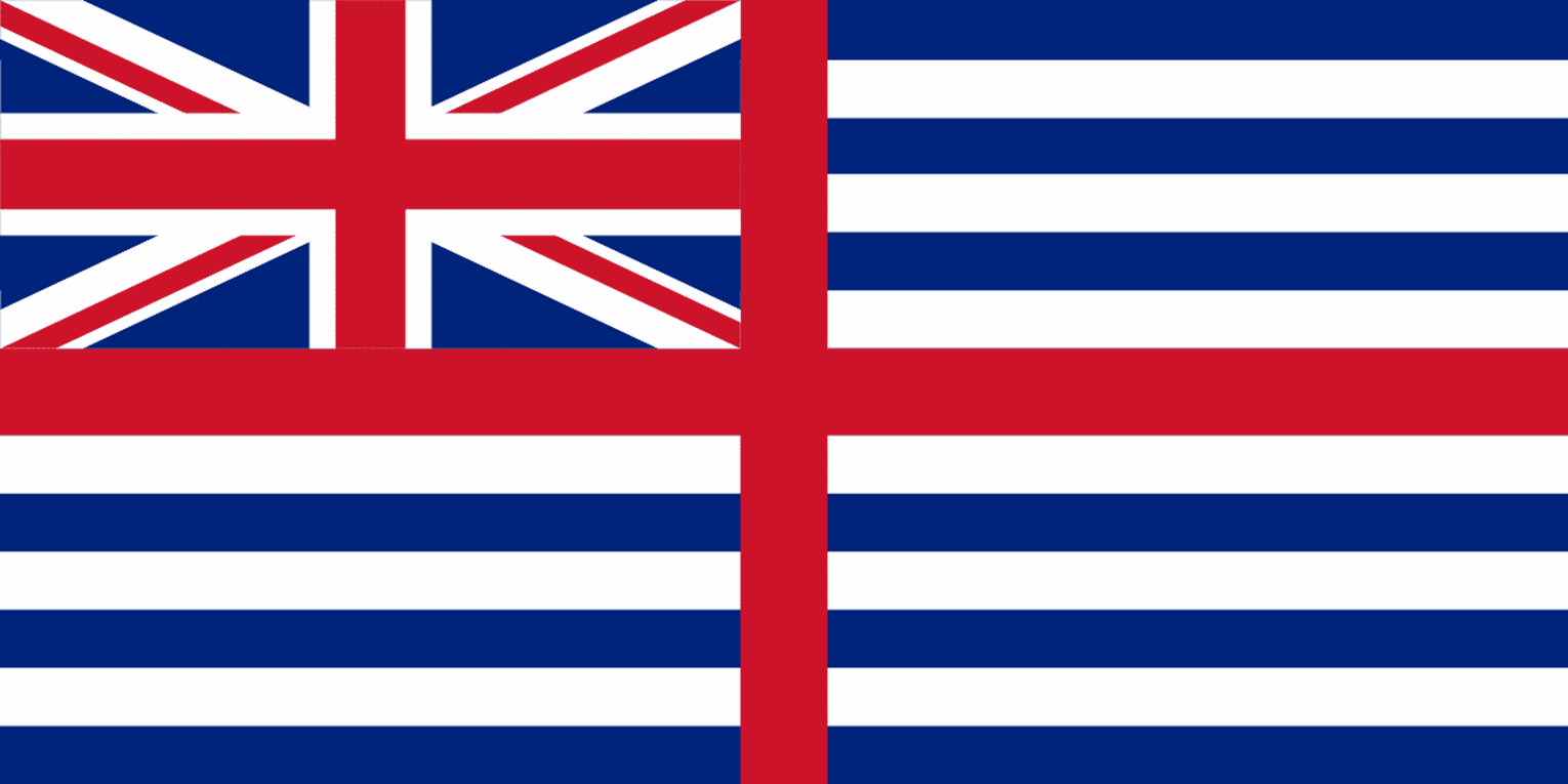 In 1850 an unofficial merchant flag was designed, the Van Dieman’s Land Ensign is a blue and white stripped field with a red cross on top and Union Jack in the top left hand centre. It was used until 1875 in the colony now known as Tasmania.