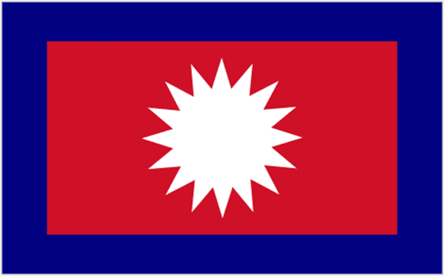 The Historical Coats of Arms of Nepal featured a shield depicting the Himalayas and is protected by two Ghurkha Soldiers with a royal headdress able. The later flag included a white cow and the faced sun and moon.