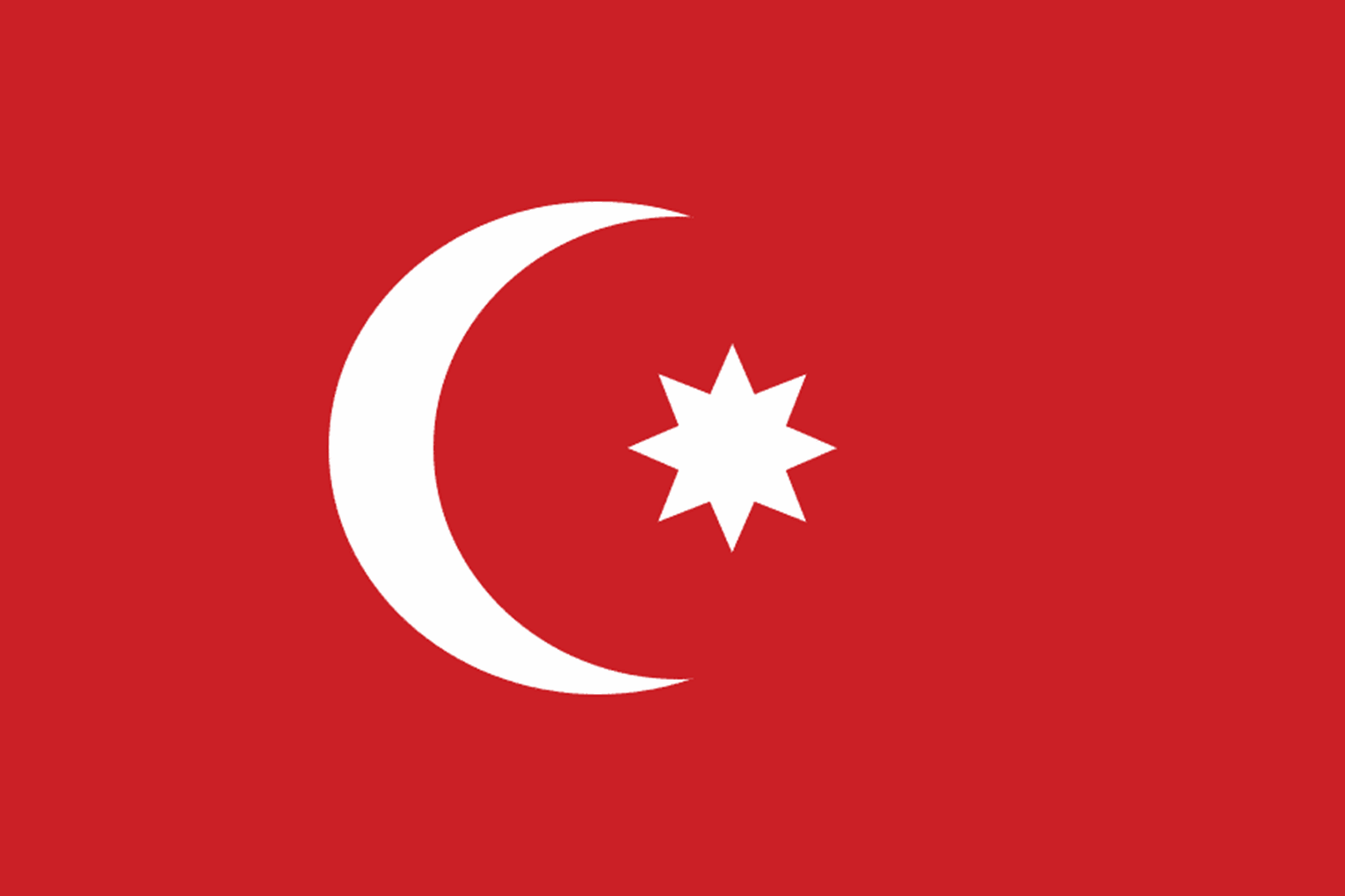 The first flag of Turkey came during the rule of the Ottoman dynasty. Even though they had taken control in 1299, there wasn’t an official flag until 1844 during the Tanzimat reformation of the Ottoman Empire. The red field and crescent with eight-pointed star was taken from the 1793 Ottoman Naval Flag. However, the Empire flag was chosen to have a five-pointed star rather than eight.