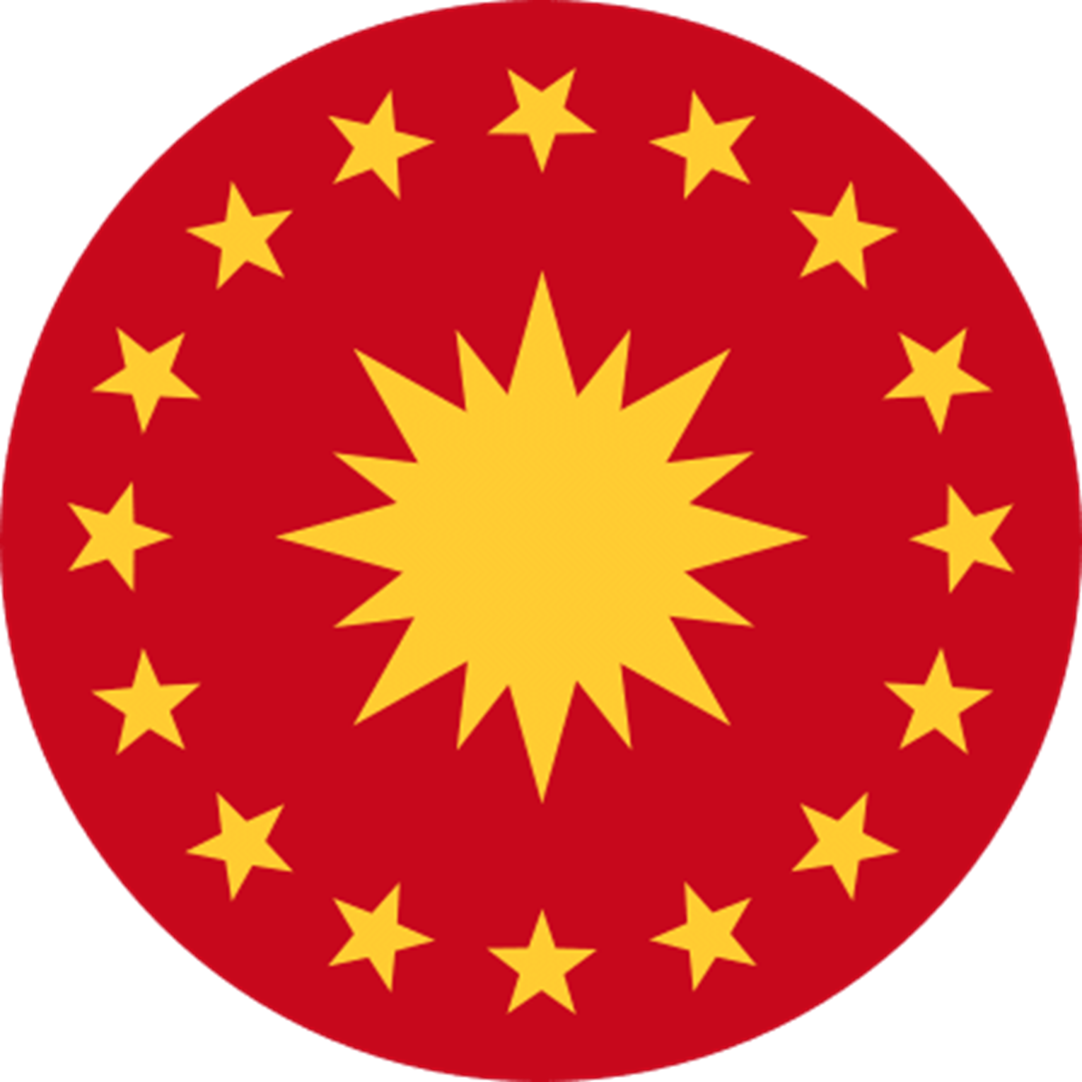 The Presidential Flag of Turkey is the red flag of turkey with the Presidential Seal of turkey in the top left hand side. The Presidential Seal of Turkey featured a golden sixteen-pointed star surrounded by sixteen five pointed stars representing the historic Turkic states.