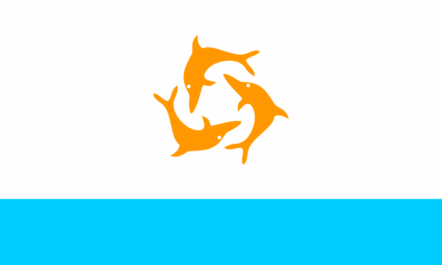 The dolphins on the flag stand for friendship, wisdom and strength.