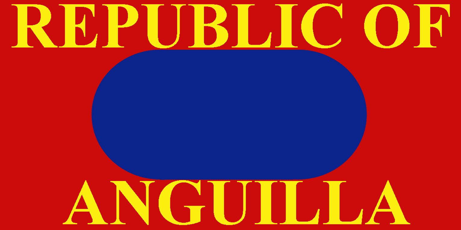 The first version was said to be a blue oval on a red field with all white image of two mermaids and a shell in the centre, it also featured the words “Republic of Anguilla” in gold. The same design with a purple field with no words is the more commonly seen and features on the 50 cent Anguillan postage stamp.